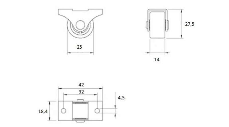 Anyag: fém, műanyag Szín: horgany, szürke Kerékátmérő: 25mm Terhelhetőség: 10kg