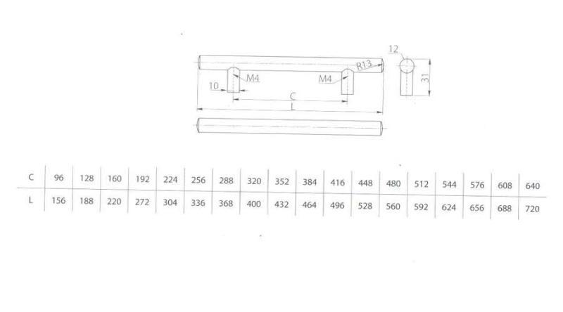 Bútorfogantyú fém K-300/ 96 szálcsiszolt hengeres