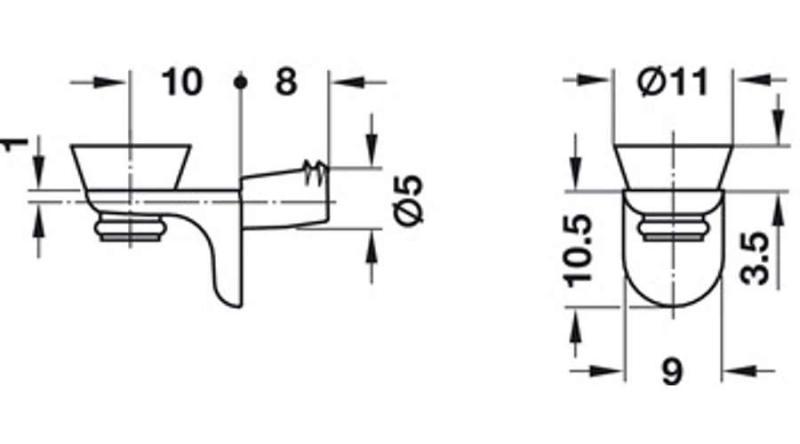- színe: nikkelezett - anyaga zamak - furat: 5mm - átlátszó műanyag széles alátéttel
