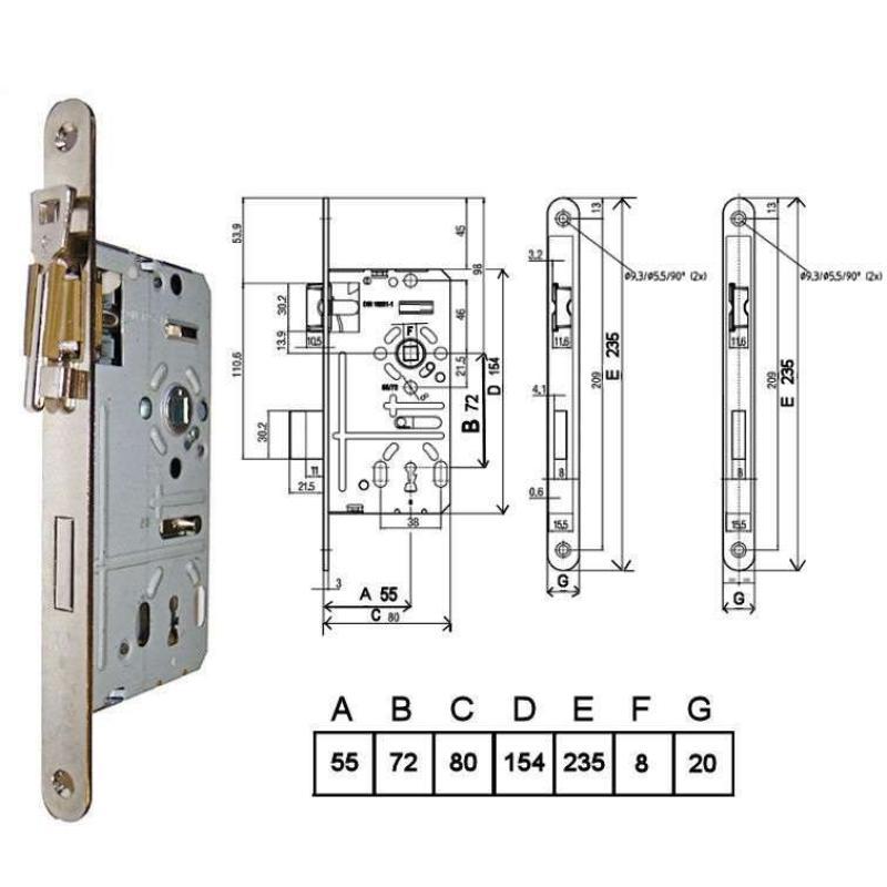Din zár 401 55/72 kly univerzális HORG. előlap