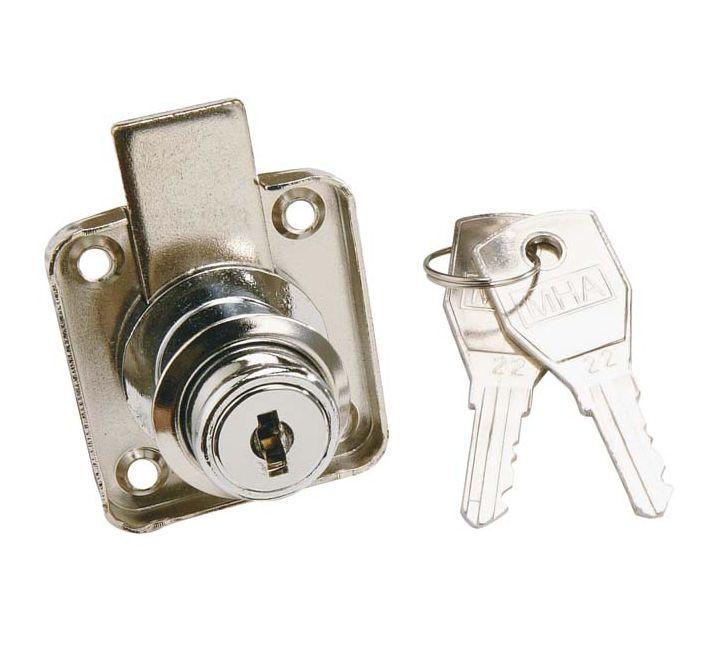 Standard rászegzős, krómozott fiókzár zamakból. Nem vezérkulcsdozható. Egyforma zárlattal is rendelhető.