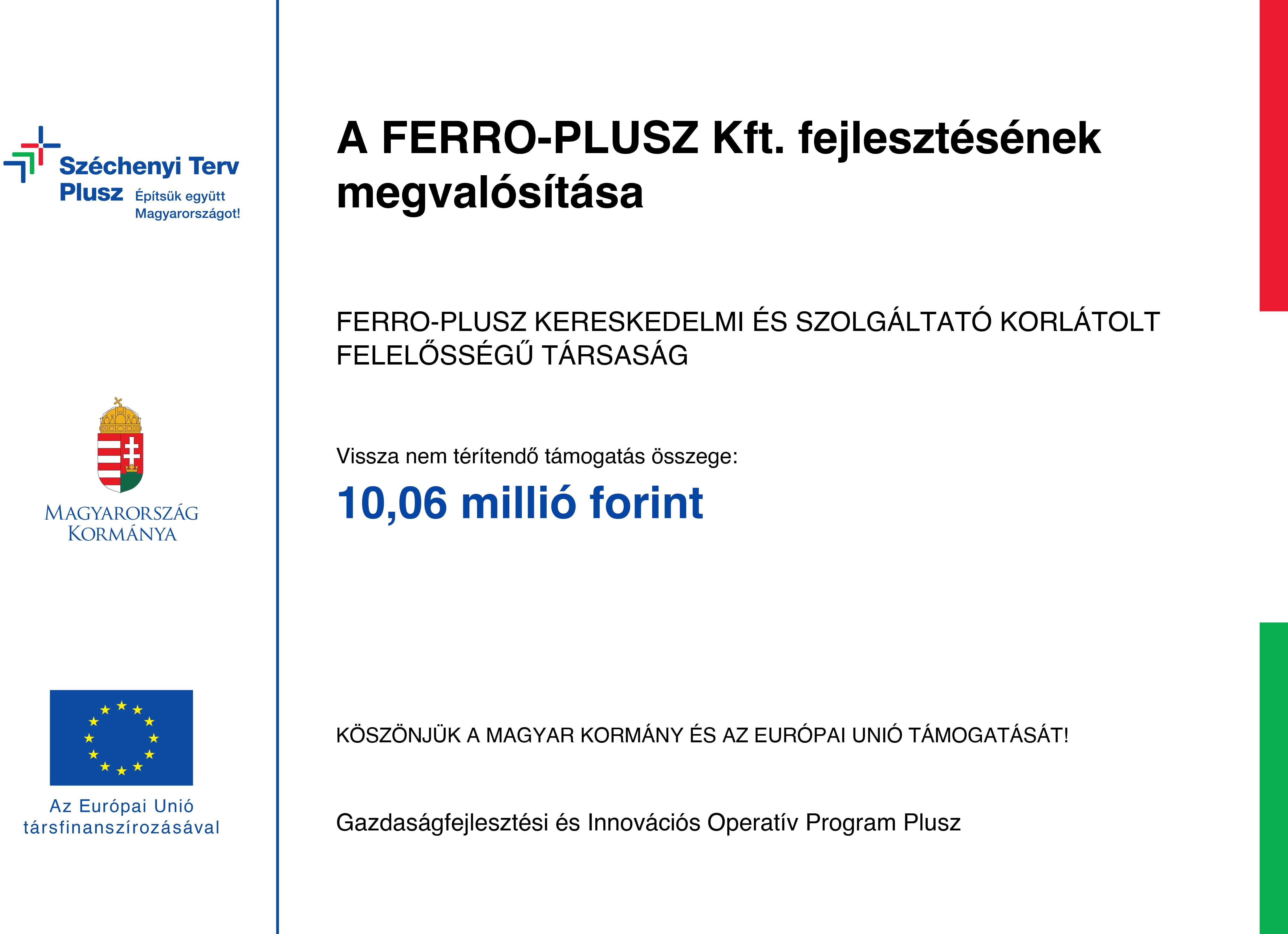 - A kedvezményezett neve: FERRO-PLUSZ Kereskedelmi és Szolgáltató Korlátolt Felelősségű Társaság